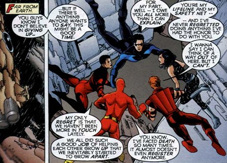 Below is an extract from "Like Riding a Bike" which shows what Dick feels about his relationship with the Original Titans.
