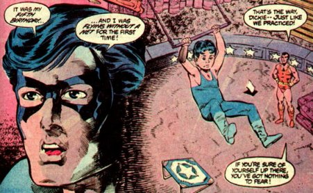 # Dick started performing with out a net at the age of five. (Secret Origins #13)